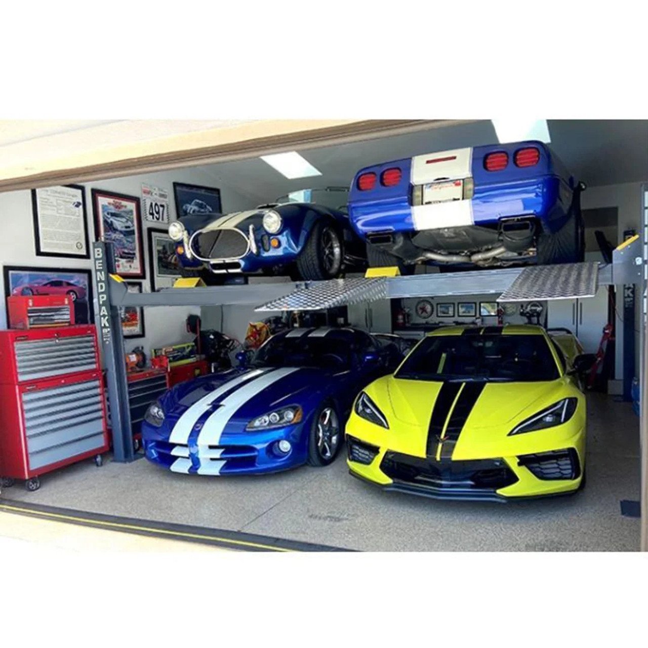 This super-wide, extended-length model is designed to transform your garage into a state-of-the-art parking facility. It turns that two-car space into a four-car trophy stand. The HD-9SWX is an extended length model with higher rise to provide exceptional clearance underneath. The extra dimensions are particularly useful for parking or servicing long-wheelbase vehicles.