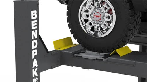 BendPak alignment lifts come standard with robust 10-1/2” diameter cable sheaves within the runway and cross tubes and 2-1/4” diameter sheave axles that are equally durable. Both contribute to the longevity and low-maintenance cost of owning and operating your car lift.
