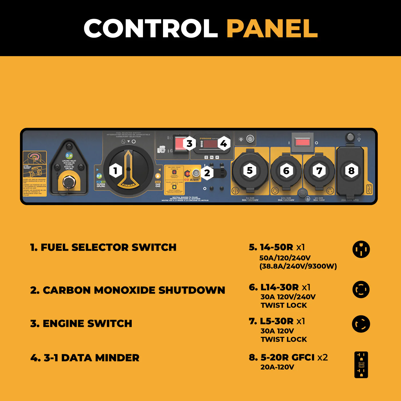 (1) 14-50R 120V/240V 50A (38.8A/240V/9300W)