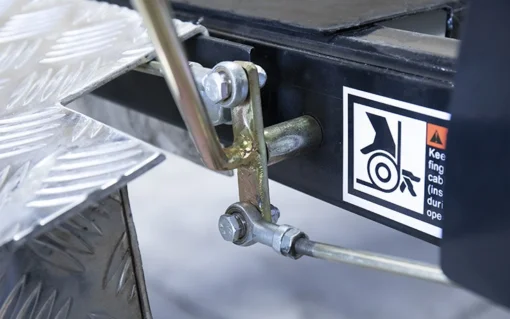 - Hardened steel safety lock linkages use 3/8” molded carbon steel rod ends to reduce flex and twist to ensure positive locking and smooth operation.