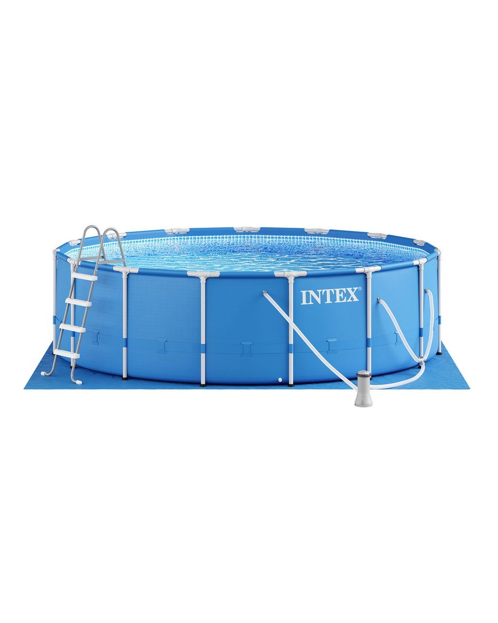 Beat the heat all summer with the Intex 15ft X 48in Metal Frame Pool. Engineered for strength, this pool is supported by strong, durable steel frames which are powder coated for rust resistance and beauty. Triple strong, SUPER-TOUGH laminated sidewalls are reinforced with an all-around band to keep frame legs firmly in place. This pool will make your backyard the place to be all summer as your family can relax and play. Connect the Krystal Clear™ Cartridge Filter pump to enjoy clean, refreshing water. Equipped with the Ground Fault Circuit Interrupter, which is an added safety feature that shuts off the pump if electrical current is exposed to water. Ready for water in 45 minutes, – follow the instructions for easy set up, and enjoy the fun!