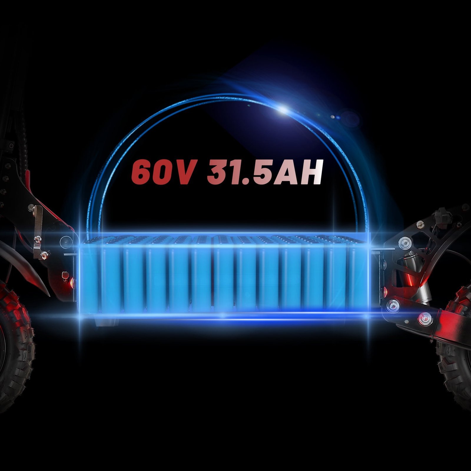 The Y11+’s high-capacity 60V 31.5Ah lithium battery provides a maximum travel range of up to 50 miles.