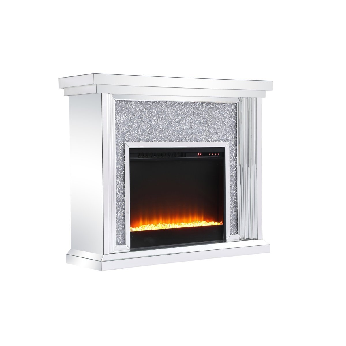 Mirrored mantle with clear crystals electric fireplace
